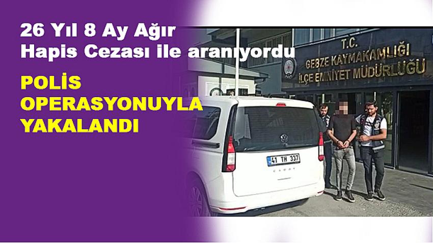 toplam 26 Yıl 8 Ay Ağır Hapis Cezası ile aranan Ö.D.(31) isimli şahıs Gebze İlçesin de düzenlenen polis operasyon ile yakalandı.