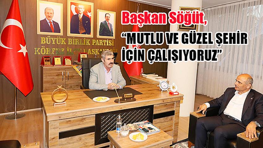Körfez Belediye Başkanı Şener Söğüt, BBP İlçe Başkanı Bayram Kurtaran ve yönetimini ziyaret etti. Karşılıklı görüş alışverişinde bulunulan ziyarette konuşan Başkan Söğüt, “İnsanların mutlu olduğu, güzel bir Körfez için çalışıyoruz” dedi