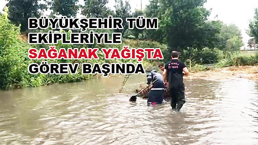 Büyükşehir tüm ekipleriyle sağanak yağışta görev başında