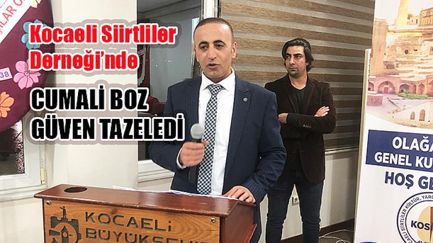 Kocaeli Siirtliler Kültür Yardımlaşma ve Dayanışma Derneği’nin yapılan 9.Olağan Üstü Genel Kurulda mevcut Başkan Cumali Boz , üyelerden güven oyu alarak yeniden başkan seçildi.