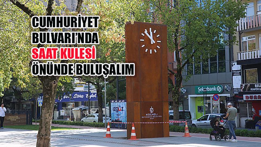 Kocaeli Büyükşehir Belediyesi, kente yeni bir sembol daha kazandırdı. Yeni baştan yaptığı Cumhuriyet Bulvarı’nı Kocaeli’nin cazibe merkezi haline getiren Büyükşehir, saat kulesi detayını ekledi. Korten çelikten 6 metre yüksekliğinde yapılan saat kulesi, Kocaelililerin yeni buluşma noktalarından biri olacak. İzmit Mesleki ve Teknik Anadolu Lisesi önünde Hereke Kilimi desenli döşeme alanının bulunduğu yerde yapılan saat kulesi, Cumhuriyet Bulvarı’nın genel görünümüne uygun şekilde inşa edildi.