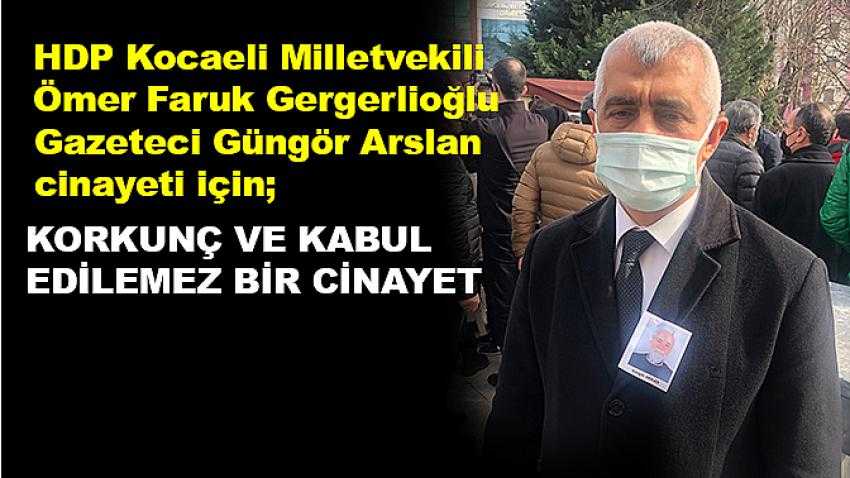 Cenazeye katılan HDP Kocaeli Milletvekili Ömer Faruk Gergerlioğlu, gazeteci Güngör Arslan’a yapılan silahlı saldırısının korkunç ve kabul edilemez bir cinayet olduğunu ifade etti.
