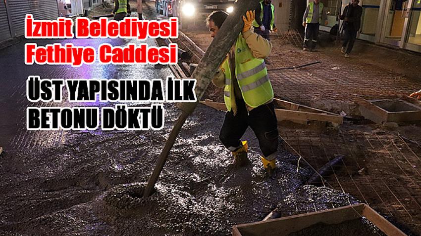 İzmit Belediye Başkanı Av. Fatma Kaplan Hürriyet’in öncülüğüyle hayata geçirilen Fethiye Caddesi yenilenme projesi kapsamında üst yapı çalışmaları başlangıcı olarak ilk beton 23 Nisan gecesi atıldı.