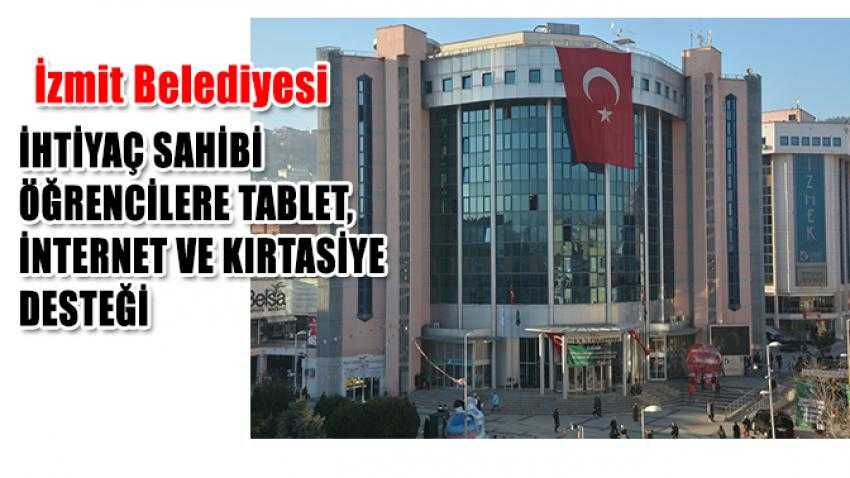 İzmit Belediyesi ihtiyaç sahibi öğrencilere tablet, binlerce kırtasiye ve internet hizmeti desteği verecek. İzmit Belediye Başkanı Hürriyet, öğrencilere 100 tablet, 20 GB internet paketi ve binlerce liralık kırtasiye kartı da dağıtacaklarının açıkladı; yardım sever vatandaşları da öğrenciler için eğitim desteğine davet etti