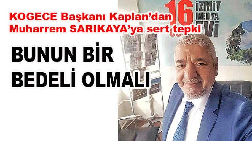 Muharrem Sarıkaya’nın İHA Muhabiri basın emekçisi Ahmet Demir’i tokatlamasına, Kocaeli Gazeteciler Cemiyeti Başkanı (KOGECE) Cemal Kaplan’dan bir tepki geldi. Kaplan, “ Sarıkaya’nın çirkin hareketlerini tasvip etmiyoruz ve bunun mutlaka bir bedeli olmalı basın mesleğinden derhal atılmalı “ dedi.