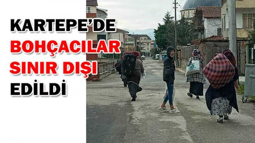 Kartepe Belediyesi Zabıta Müdürlüğü ekipleri gelen ihbar sonrasında harekete geçerek Sakarya üzerinden Kartepe’ye gelen 6 bohçacıyı ilçe dışına çıkardı. Kütahya ili plakalı araçla Sakarya’dan Kartepe’ye gelen bohçacılar için Zabıta Müdürlüğü ekipleri yasal işlemleri uyguladı.