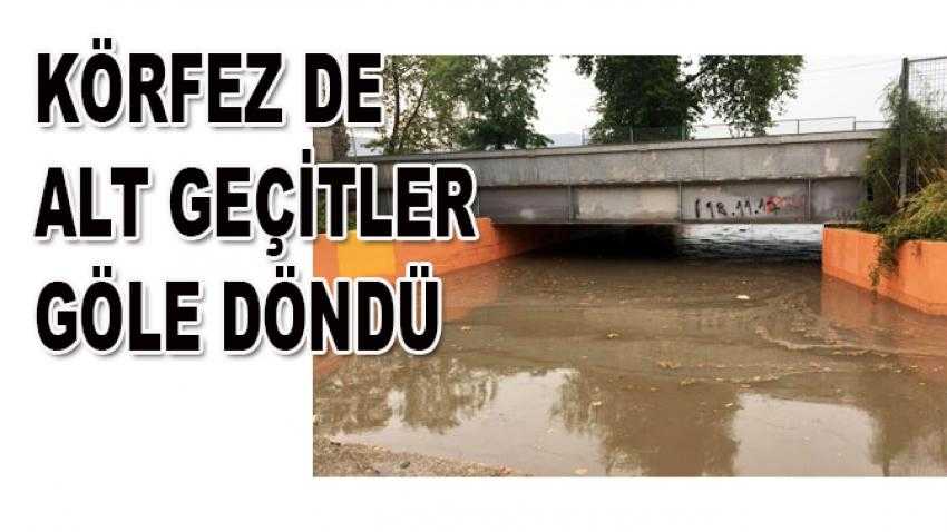 Körfez’de bulunan tren yolu alt geçitleri yoğun yağan yağmurlardan göle döndü