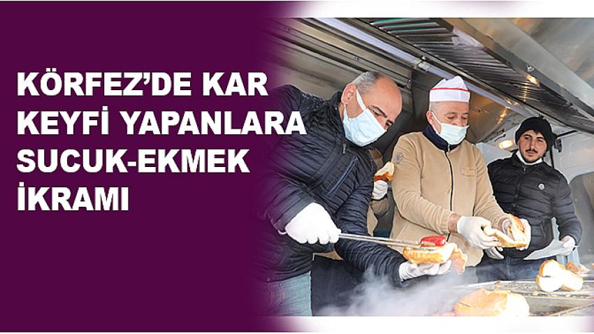 Körfez’de kar keyfi yapanlara sucuk-ekmek ikramı