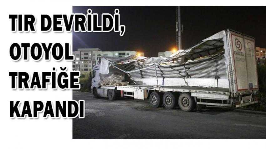 Kuş yemi yüklü tır devrildi, otoyol trafiğe kapandı
