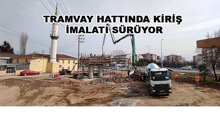 Tramvay hattında kiriş imalatı sürüyor