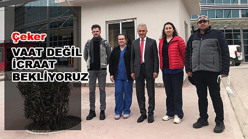 Hastanelerde görev yapan sağlık çalışanlarını ziyaret eden ziyaret eden Türk Sağlık Sen Kocaeli Şube Başkanı Ömer Çeker sağlık çalışanları kamu iş verinden vaat değil icraat beklediğini söyledi.